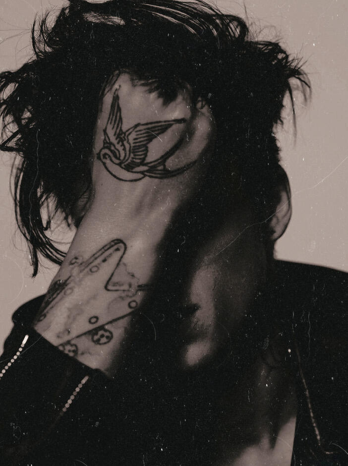 Even more tattoos, some of which are used to cover up his scars. The most notable include a number of bird tattoos (neck, hand), a skull, 'Mischief' along his knuckles, 'Reckless' along his lower abdomen and 'Heartbreaker' on his upper forehead. (Most of Ash Stymest's tattoos are canon, with the exception of those too specific, such as is 'London' tattoo).