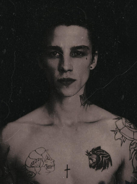Even more tattoos, some of which are used to cover up his scars. The most notable include a number of bird tattoos (neck, hand), a skull, 'Mischief' along his knuckles, 'Reckless' along his lower abdomen and 'Heartbreaker' on his upper forehead. (Most of Ash Stymest's tattoos are canon, with the exception of those too specific, such as is 'London' tattoo).